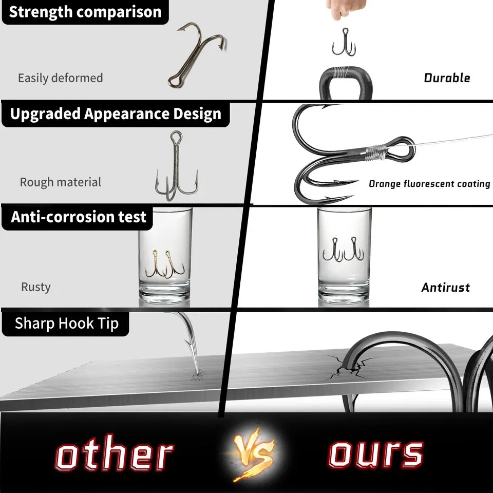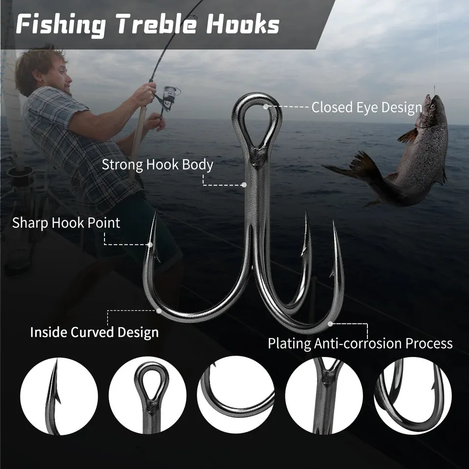 10 Pack 9KM Triple Hook Minnow Treble Hook For Hard...