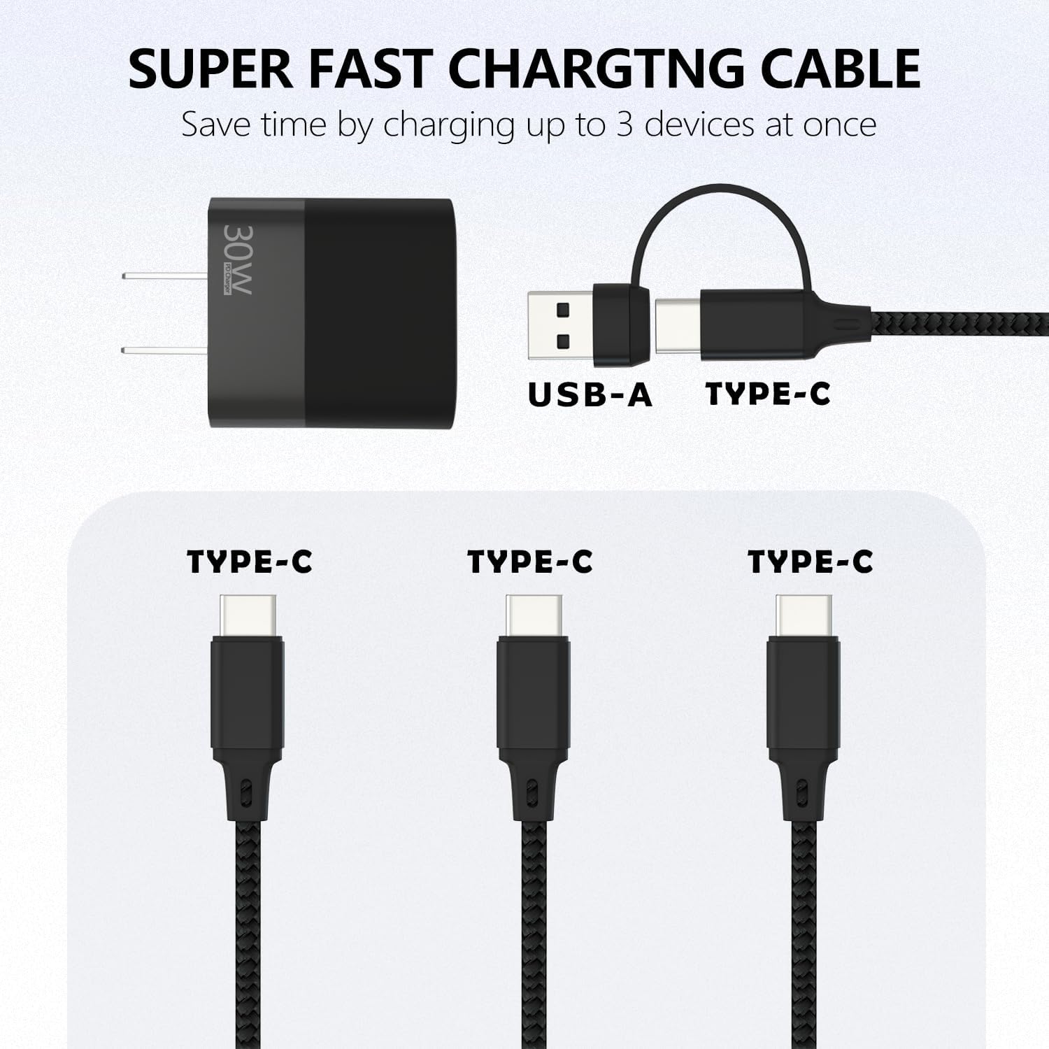 - 【You Would Get】You will get 30W Detachable wall charger adapter x1+1pcs 4 feet power cable with Type-C connection adepter x3. Please don't hesitate to contact us if having any question about charger adapter.Thank you!