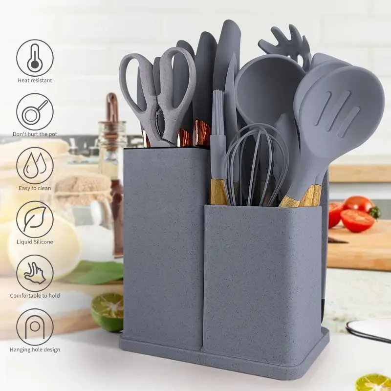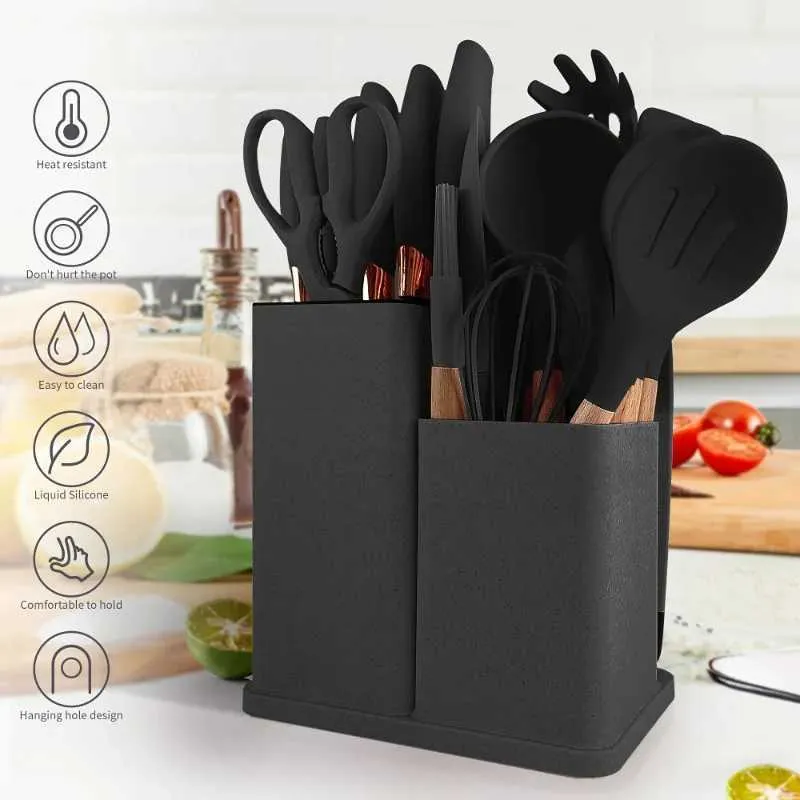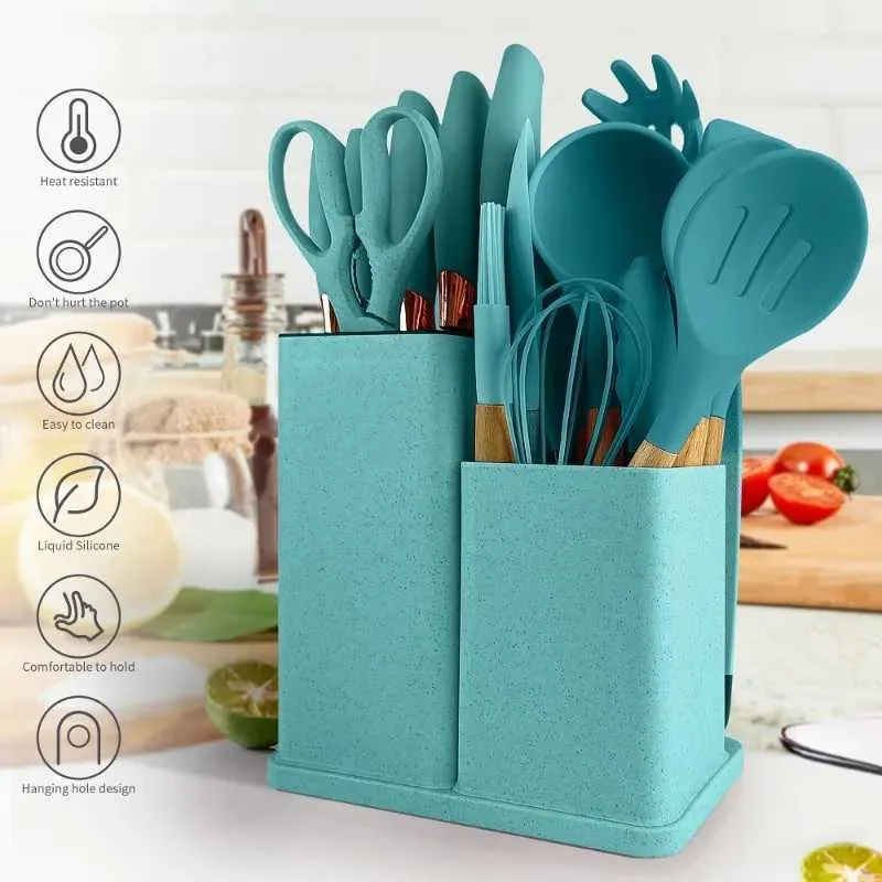 Advanced Silicone kitchenware utensil set with Wooden...