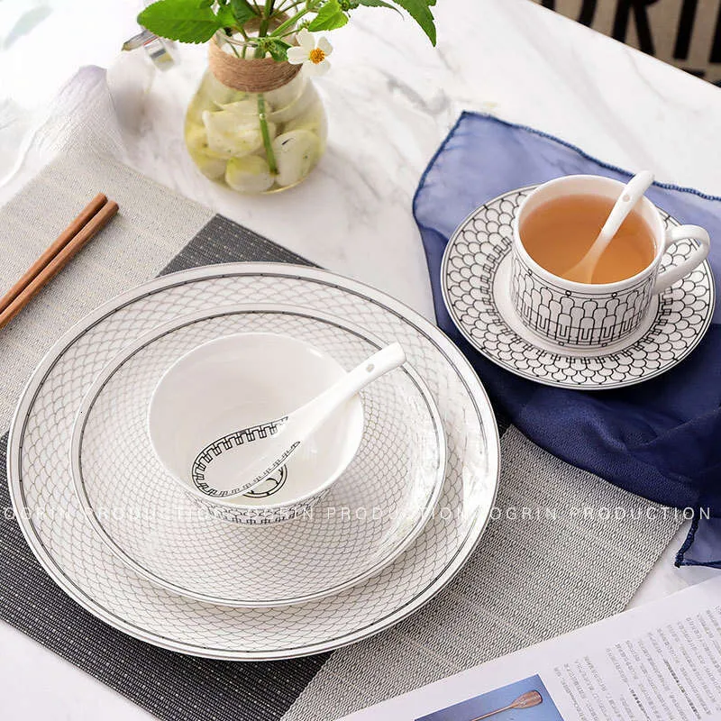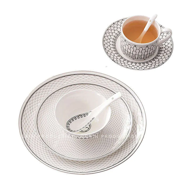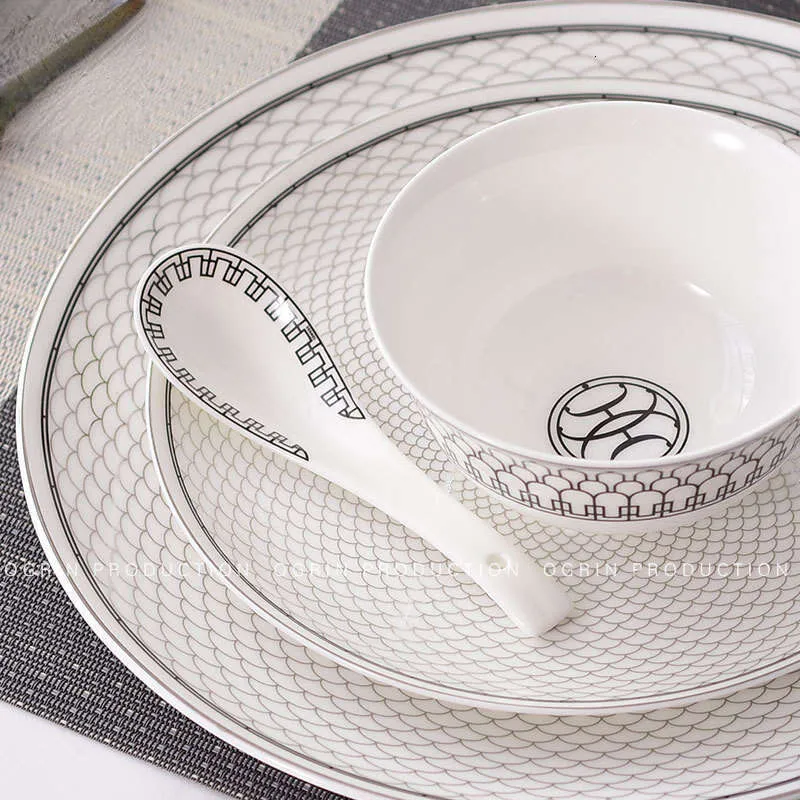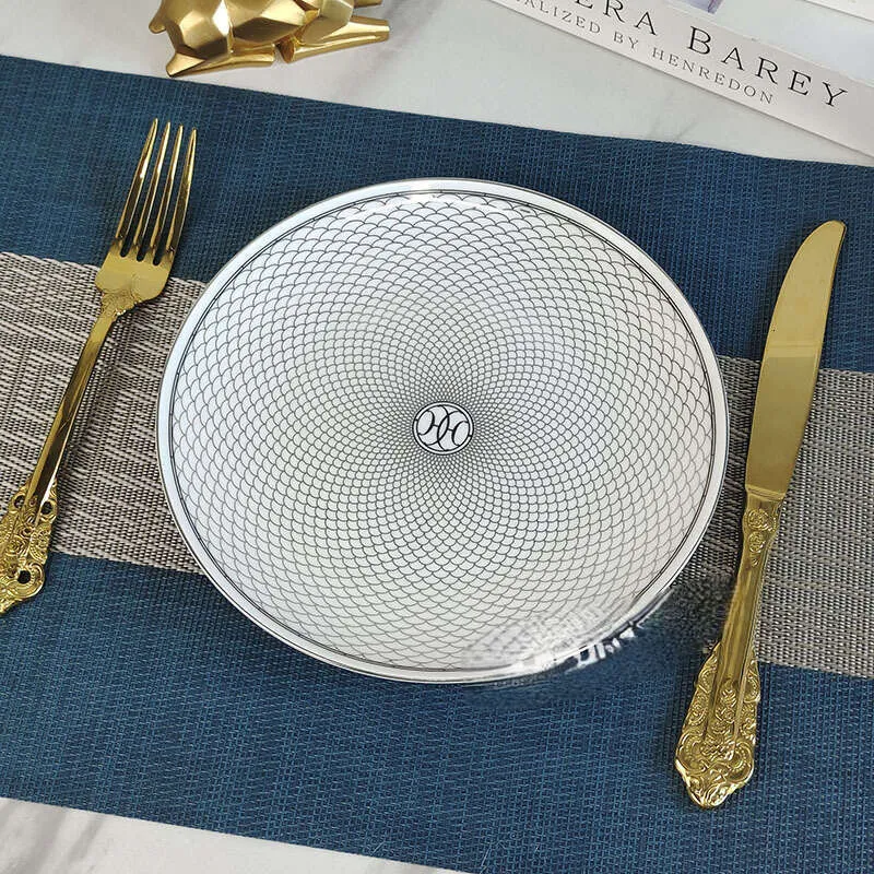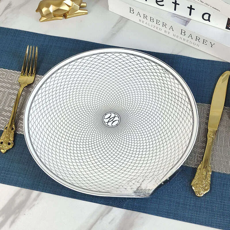 Minimalist Fish Scale Design - This creative ceramic steak set features an elegant fish scale pattern that adds subtle sophistication to your Western dining tableware, enhancing the presentation of meals and matching modern minimalist American kitchen aesthetics with functional style.