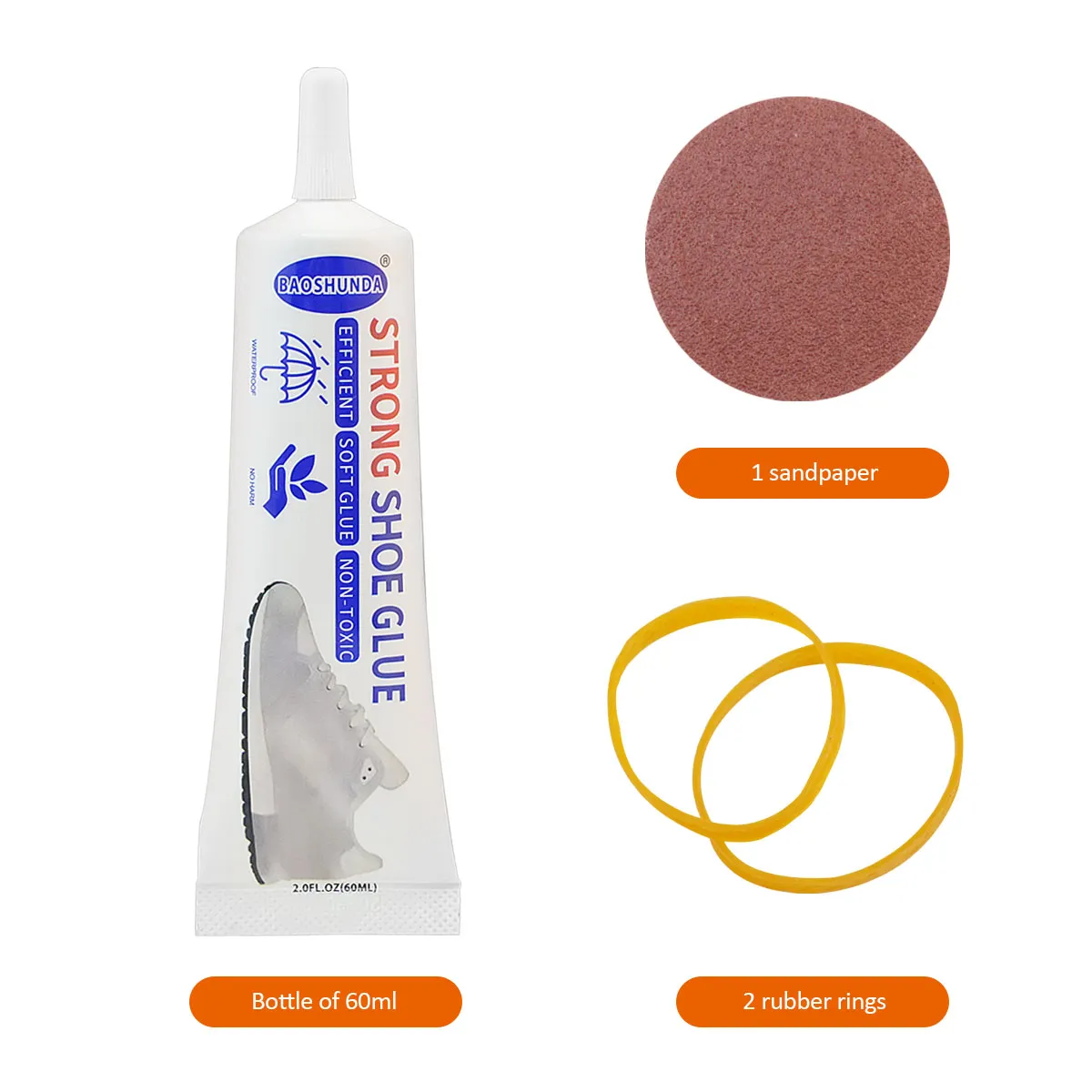 Instant-Cure Rubber Cement: This 60 ml professional-grade adhesive by Baoshunda bonds shoes quickly and securely, offering a strong, flexible seal to extend footwear life. Ideal for repairing soles, heels, and seams, it saves time and cost on shoe maintenance for everyday wear.