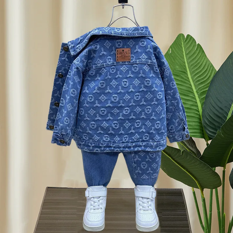 Blue Denim Kids Clothing Set Patterned Jacket,...