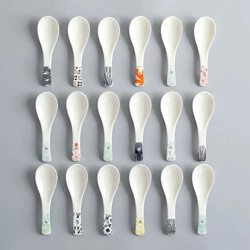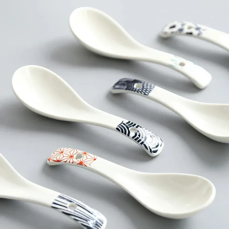 Ceramic Spoon Functionality: This multipurpose ceramic spoon is designed for scooping porridge, soup, and other dishes, enhancing your dining experience with its ergonomic shape tailored for comfortable use in both household kitchens and restaurant settings.