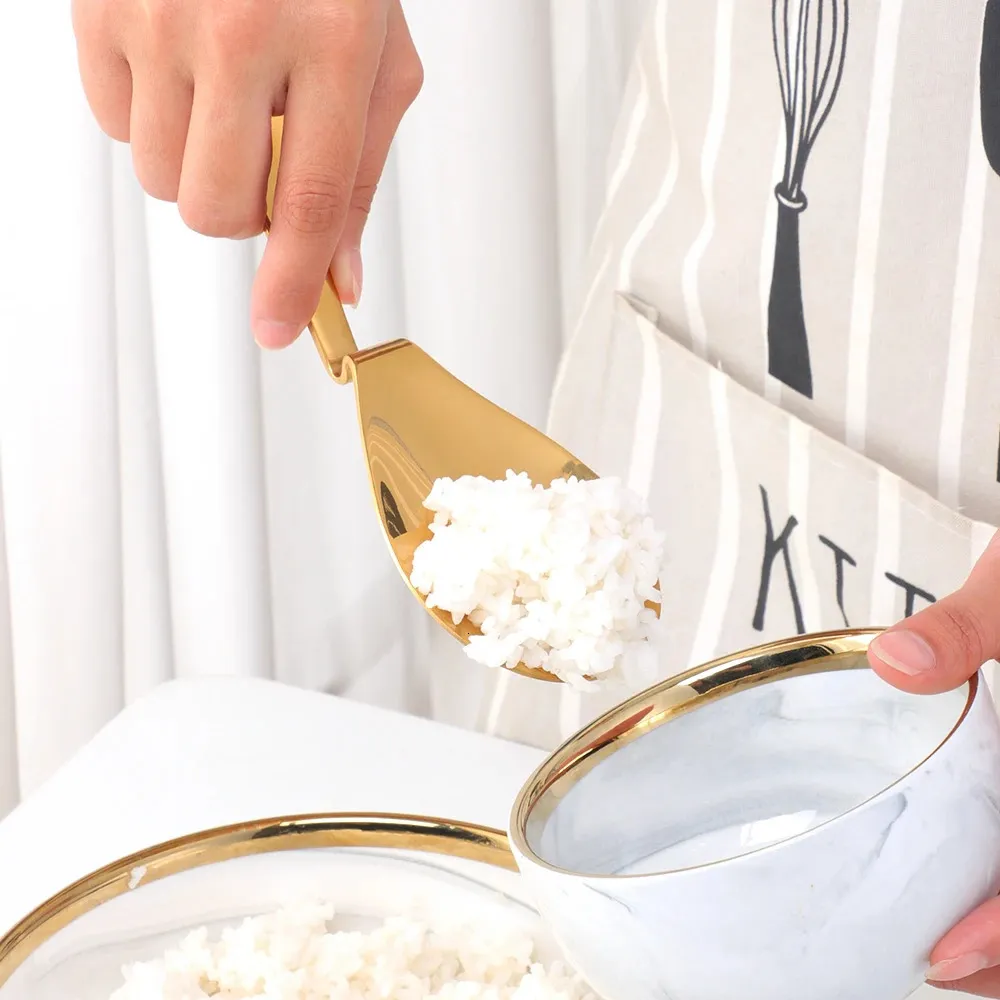 • Ergonomic Bent Handle Design: Features a stainless steel bent handle that enhances grip and comfort, making it easier to serve rice, soup, or salad without wrist strain during casual meals or family dinners at home.