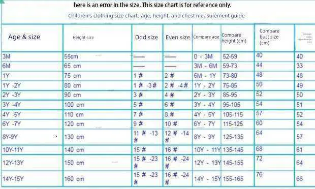 • The sizes of children's products are mainly determined based on the height and weight of children. The size chart can be found in the details below.