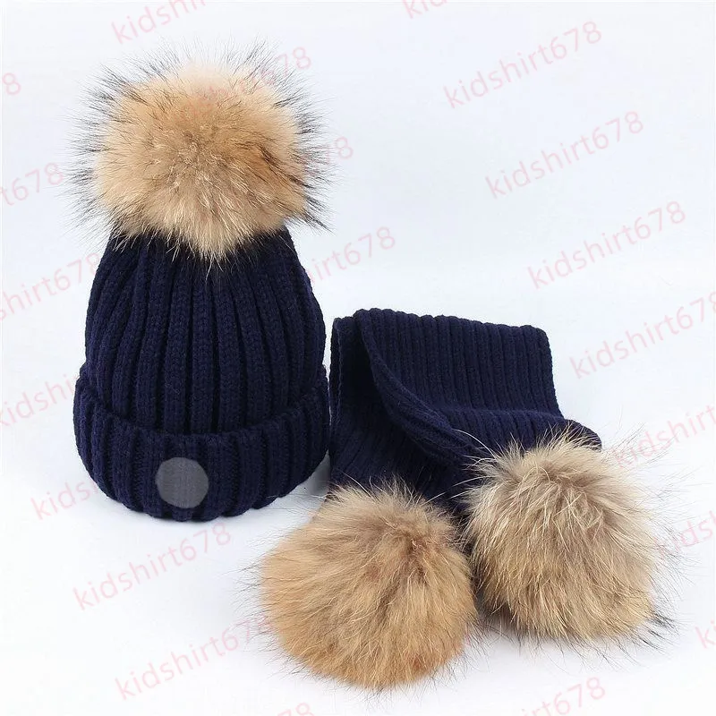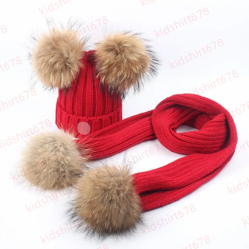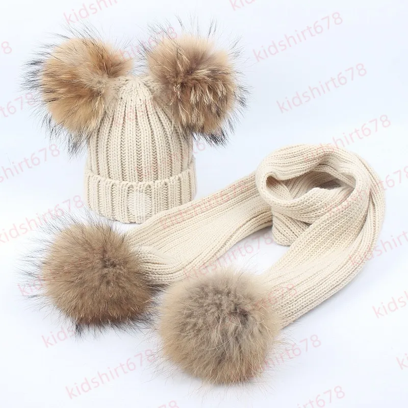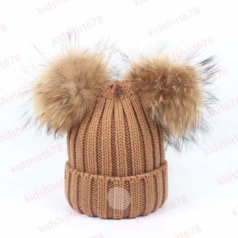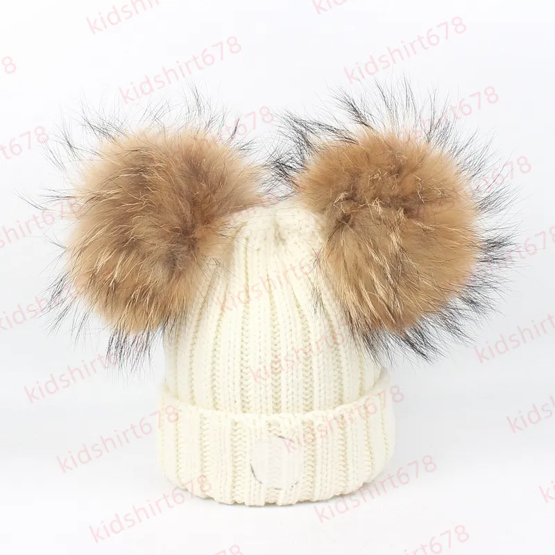 Embroidered Kid's Baby Winter Hat With Big Fur Poms ...