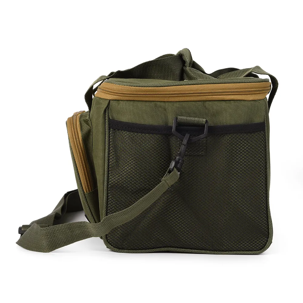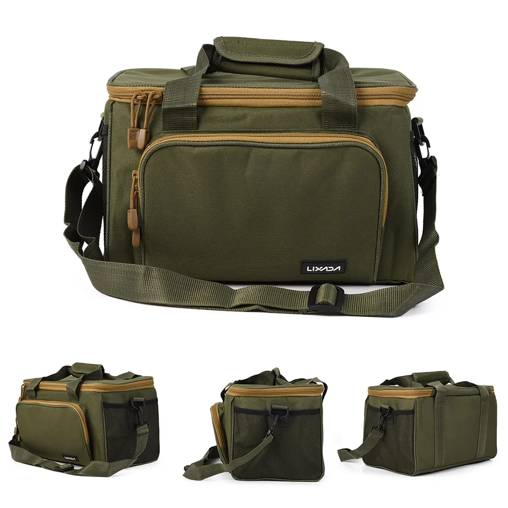 Made of 600D canvas , it is long lasting and durable to use. It can store fishing reels, fishing lures, fishing mini rods, or fishing tackle case and other compatible fishing tackles. A useful and specially designed fishing bag is for any fishing enthusiasts.Features:600D canvas construction, durable and wear-resistant to use.Multi-purpose as handbag, shoulder bag to carry fishing tackles.A main compartment with a small pouch and two side mesh bag.Thickened layers with one shoulder bag for long-term usage.A smart addition to your fishing trip.Specifications:Material: 600D CanvasColor: Army Green / Black / Camouflage (optional)Dimension: 36 * 23 * 22cm / 14.2 * 9.1 * 8.7inPackage size: 40 * 18 * 6cm / 15.7 * 7.1 * 2.4inPackage weight: 560g / 1.23lbPackage List:1 * Fishing Bag1 * StrapNote: Please allow 1 - 3cm size error due to different measurement method.