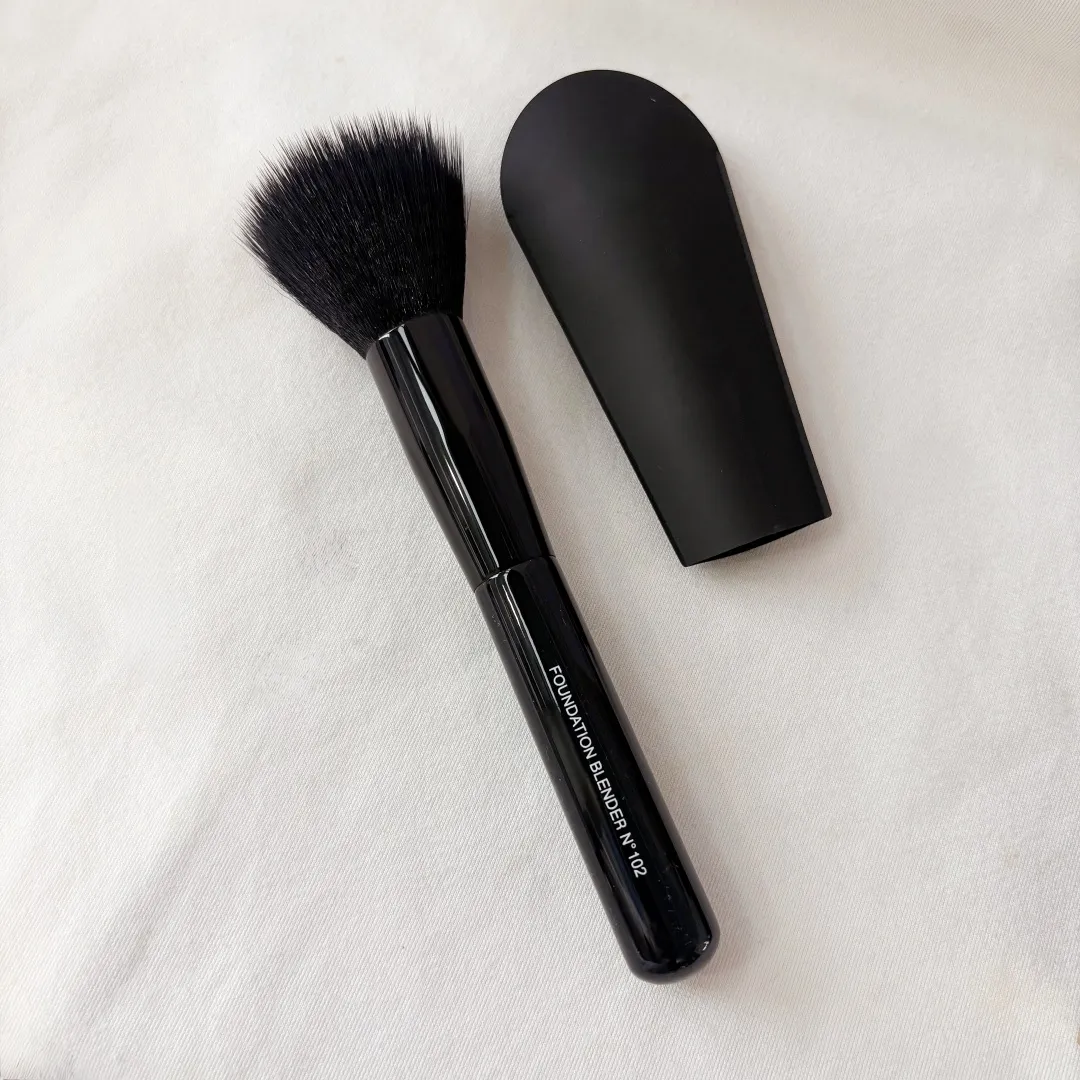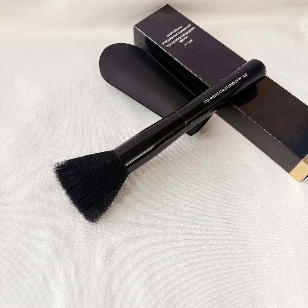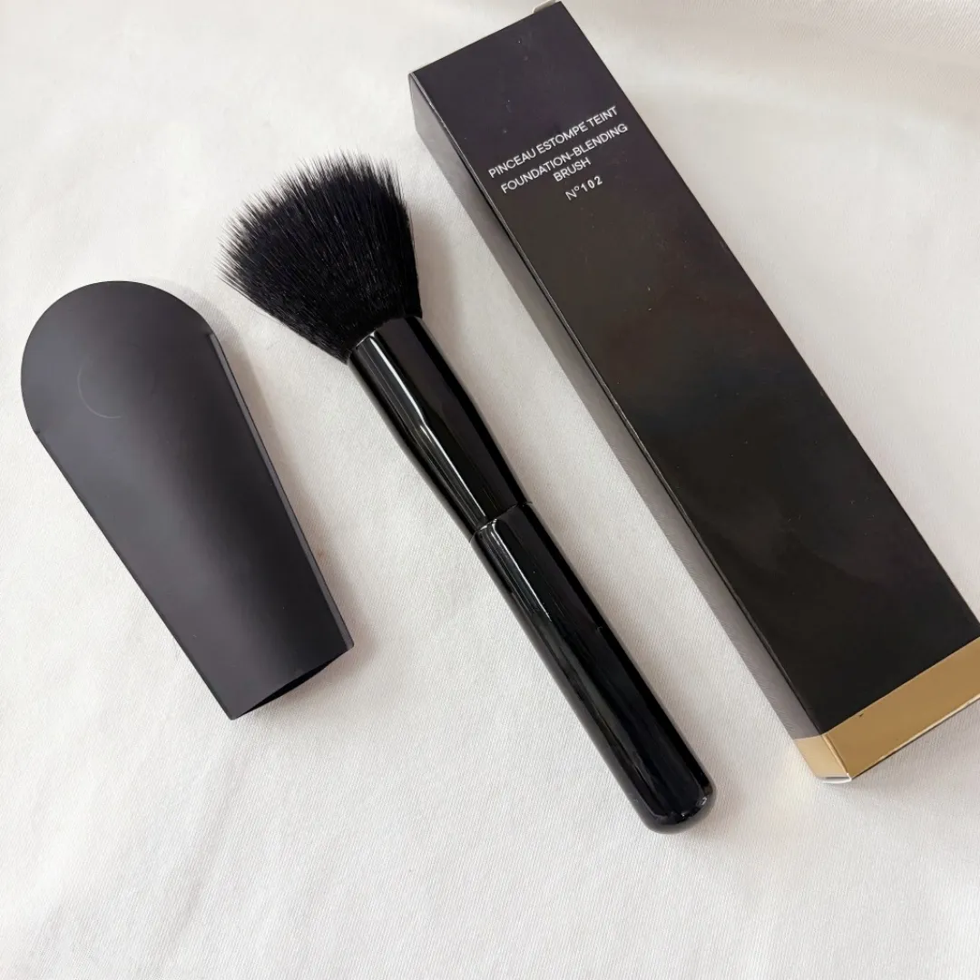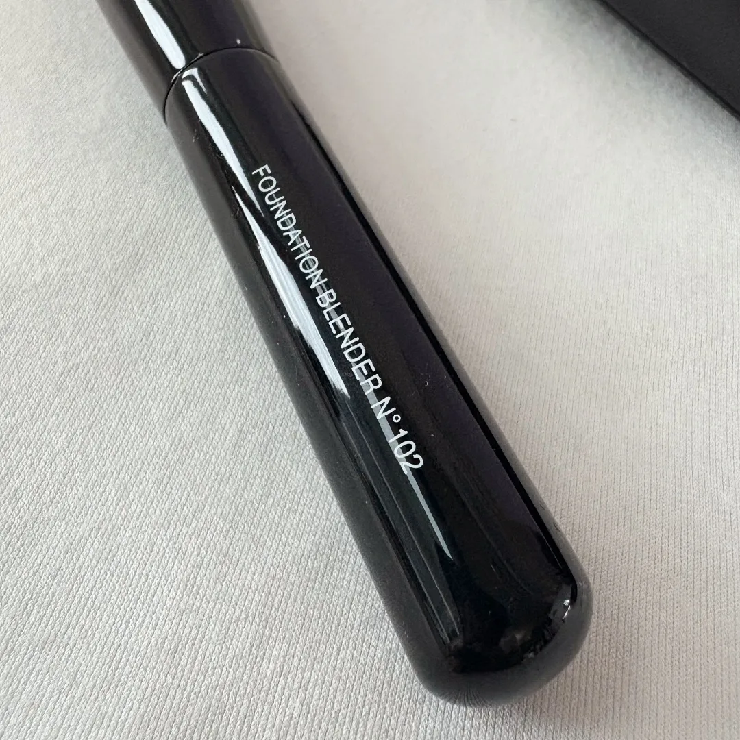 Foundation-Blending Brush N°102 A foundation brush that effortlessly blends fluid, cream and powder formulas. Thisbrushes give everyone access to makeup artist techniques. Featuring a selection of synthetic bristles as soft as they are resilient, protected by a black lacquered case, they elegantly stand the test of time. The Foundating Blending brush is specially designed for subtle, weightless application of fluid and cream foundations. The fineness and placement of the bristles ensure an extremely light finish and a more refined application of foundation. View more