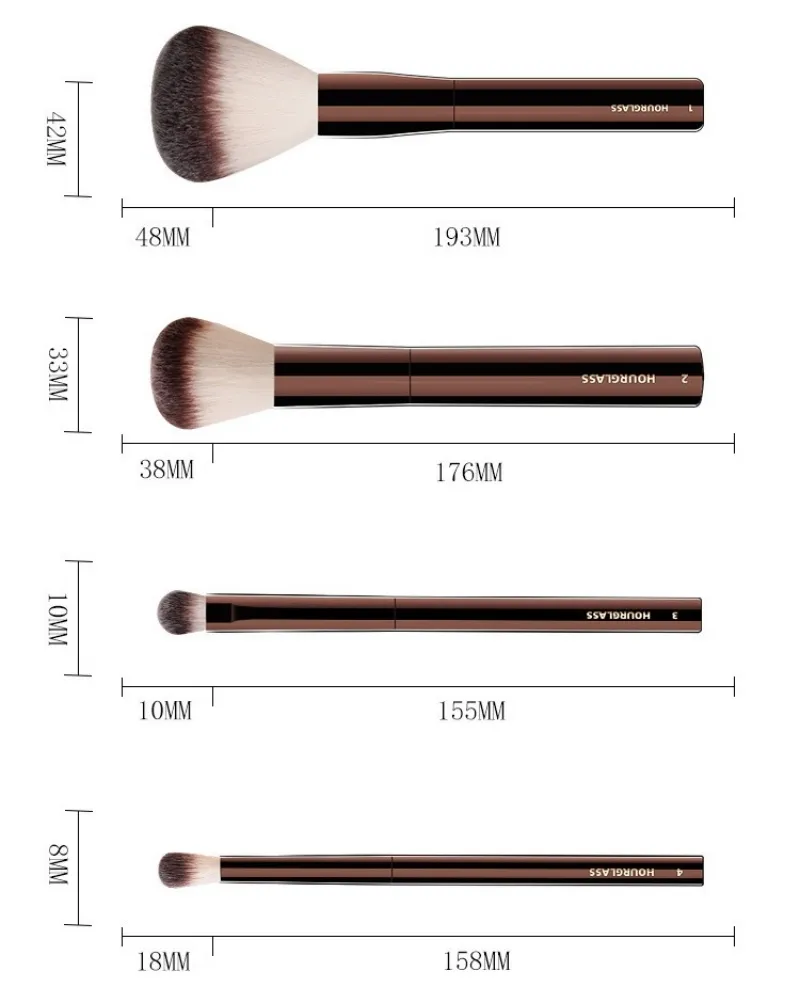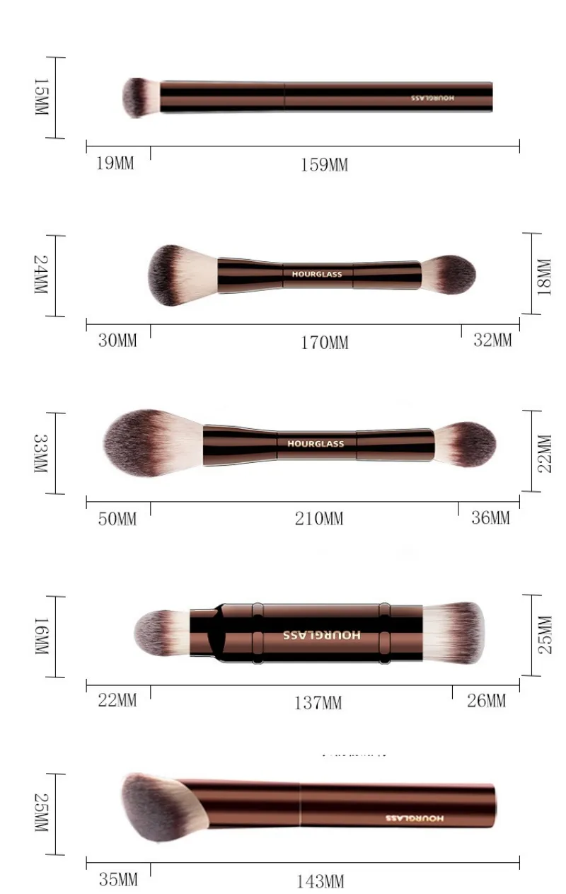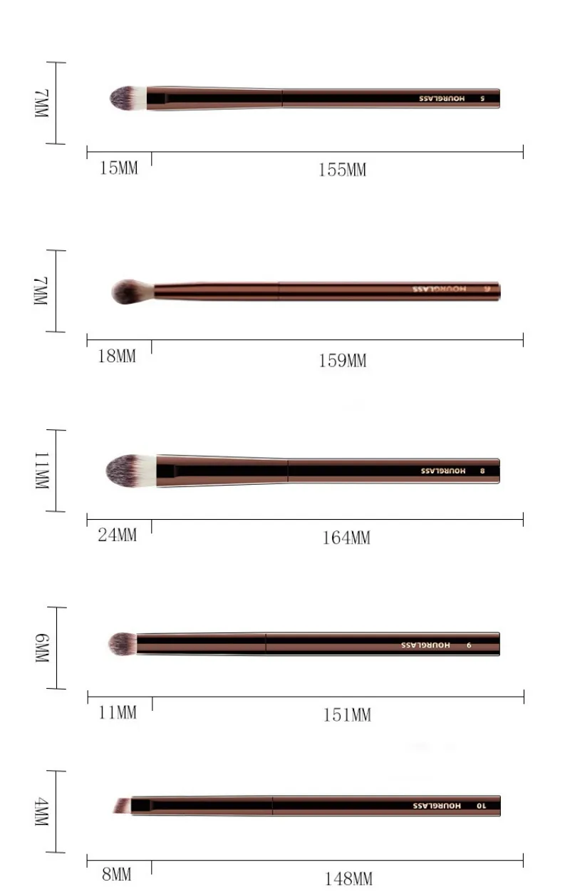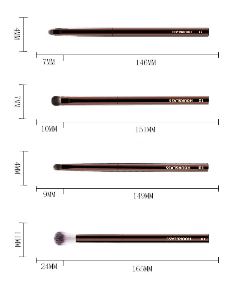 • These hourglass eye brushes Features PETA-approved, high-grade, ultra-soft Taklon bristle.