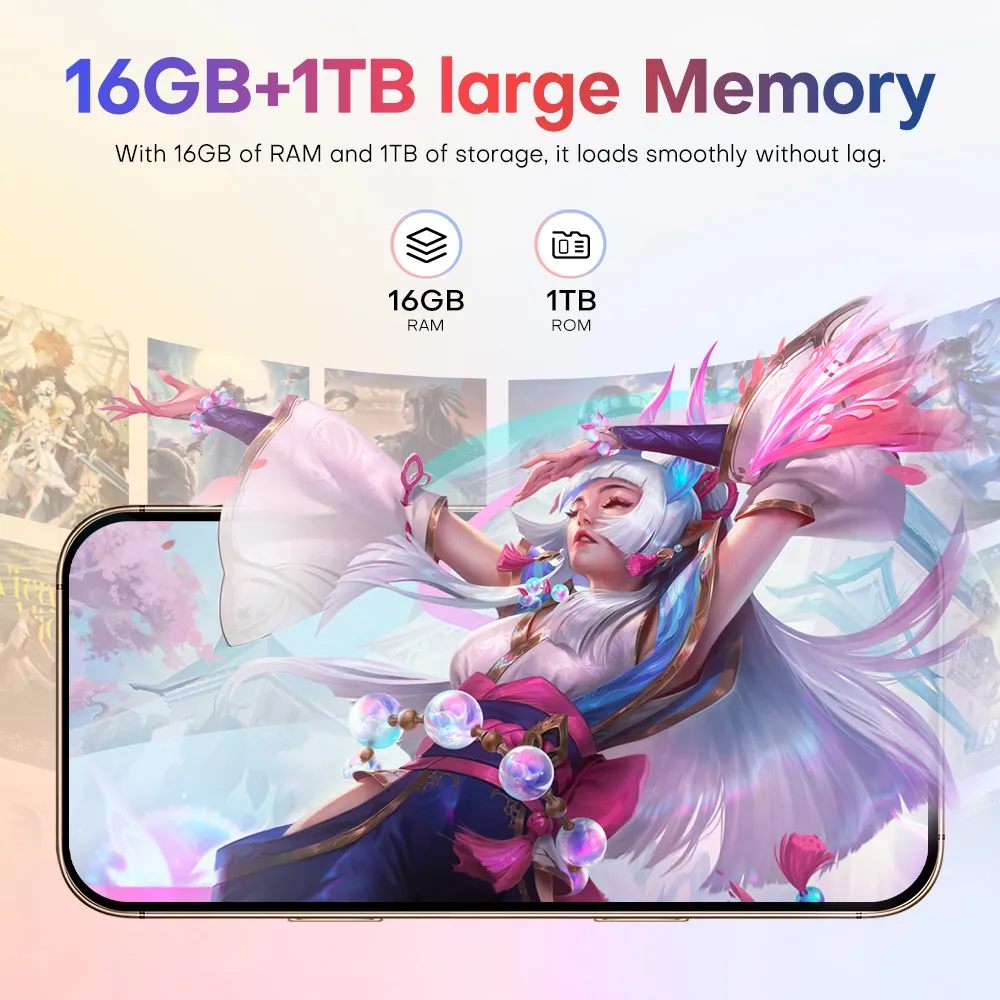 • Experience seamless multitasking with our smartphone's 16GB RAM and 1TB ROM capabilities, ensuring lightning-fast performance whether you're browsing through apps or editing videos.