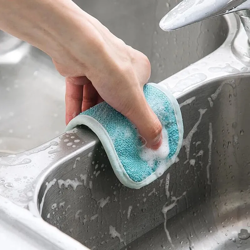 Dual-Sided Kitchen Cleaning Cloths: Designed with a sponge side and an absorbent rag side, these kitchenware brushes efficiently tackle grease and grime, streamlining your dishwashing routine for faster, more effective cleaning in busy American kitchens.
