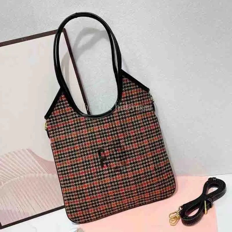 Luxury Ivy Leather Tote Bag Large Plaid Canvas...