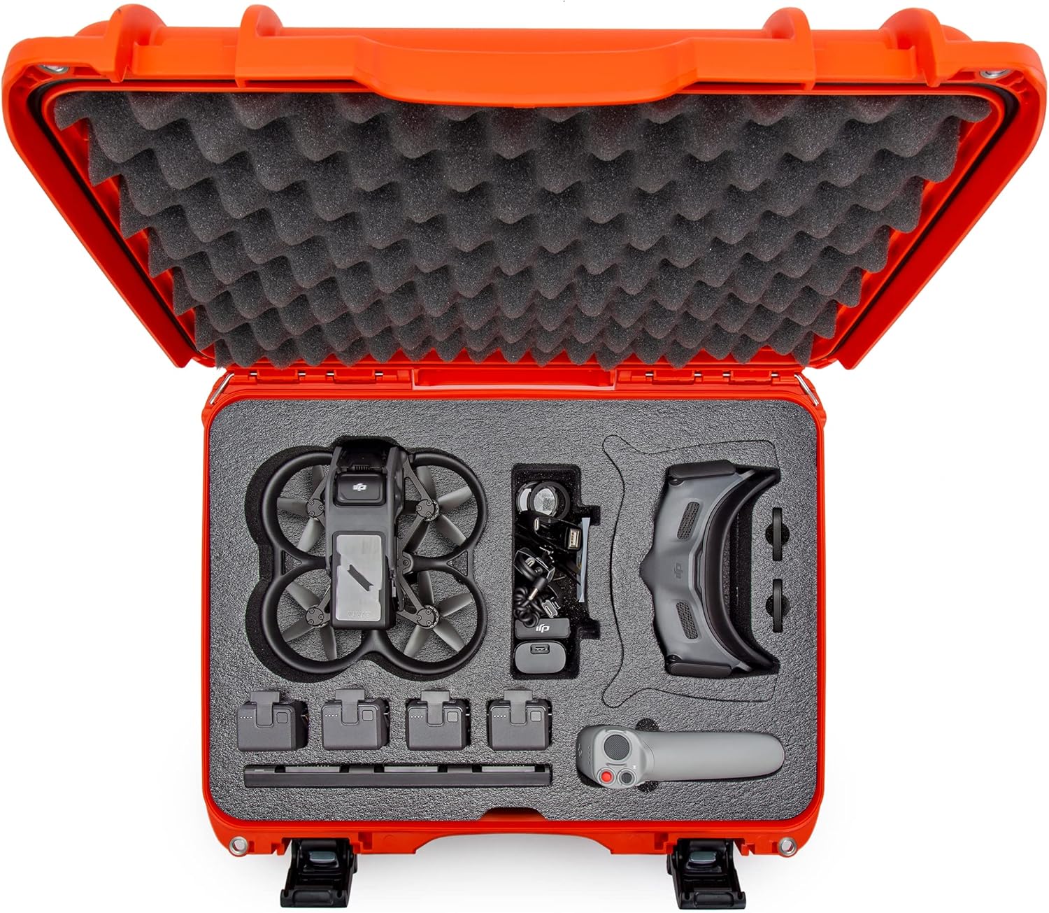 The NANUK 925 Waterproof Protective Case for DJI AVATA, Goggles and Fly More Combo was built to organize, protect, and carry. The closed-cell high-quality foam is pre-cut to fit your DJI AVATA, Goggles and Fly More Combo. The clever design holds the AVATA Drone with the headband installed, the RC 2 and Motion Controller, the Goggles 2 or FPV Goggles, four (4) additional Intelligent Flight Batteries, the Charging Hub, two (2) Eyeglass Frames, extra Propellers, multiple Cables and many other accessories securely. Equipped with a waterproof and indestructible NK-7 resin shell and PowerClaw superior latches, photographers, videographers, drone pilots, and enthusiasts trust NANUK to protect their DJI AVATA, Goggles and Fly More Combo. Protect your investment.
