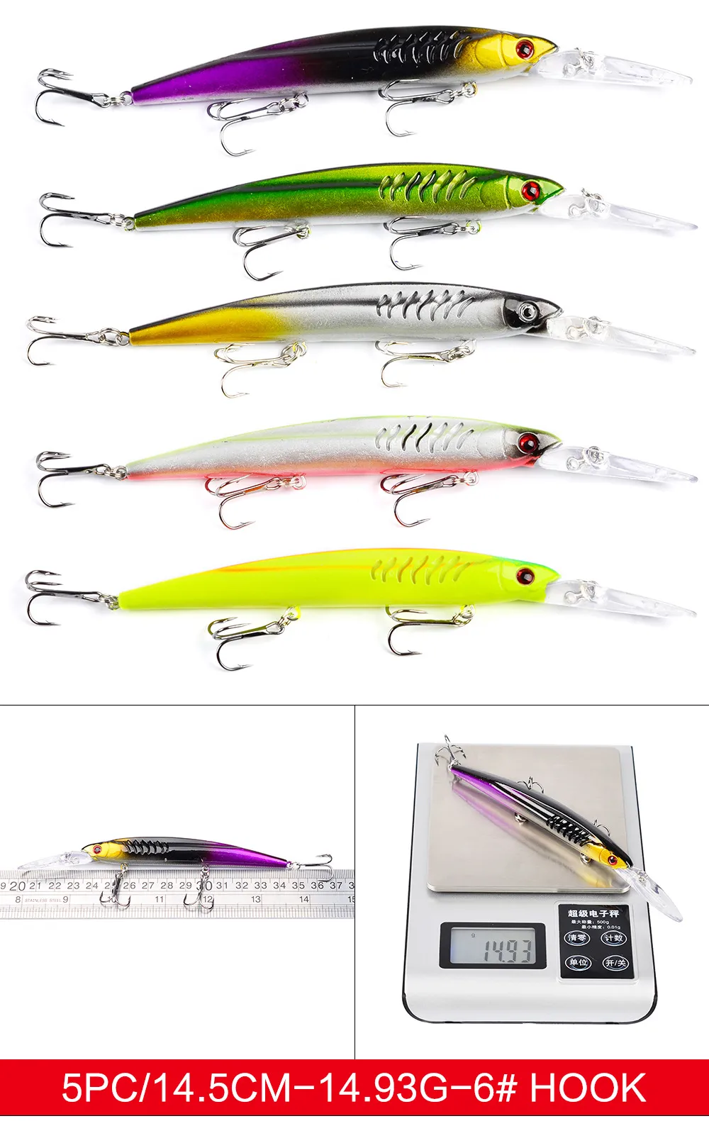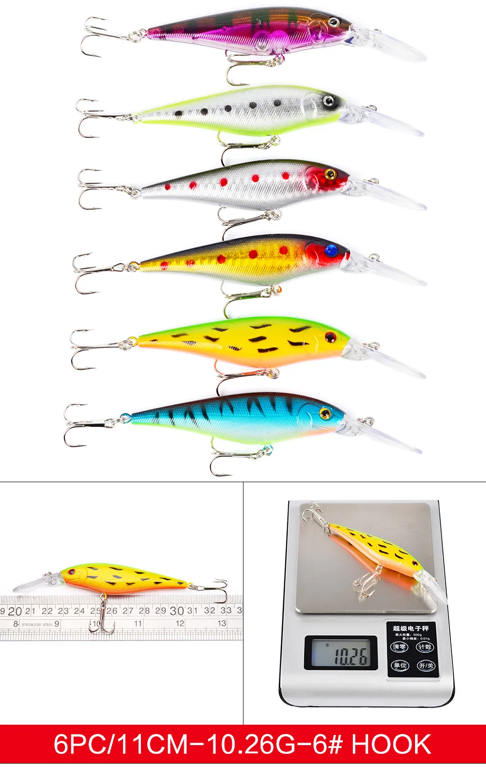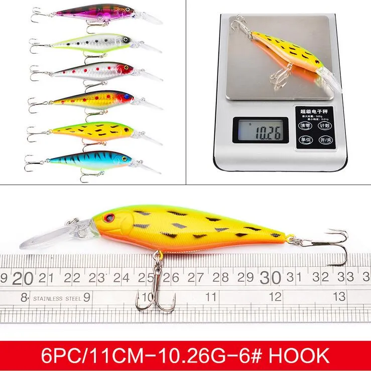 STEEL BALL INSIDE: Hard Lures with ring gravitational ball inside, the ball can spin around quickly, make a noise to attract fish, and stay steady for a long time,control barycenter easily