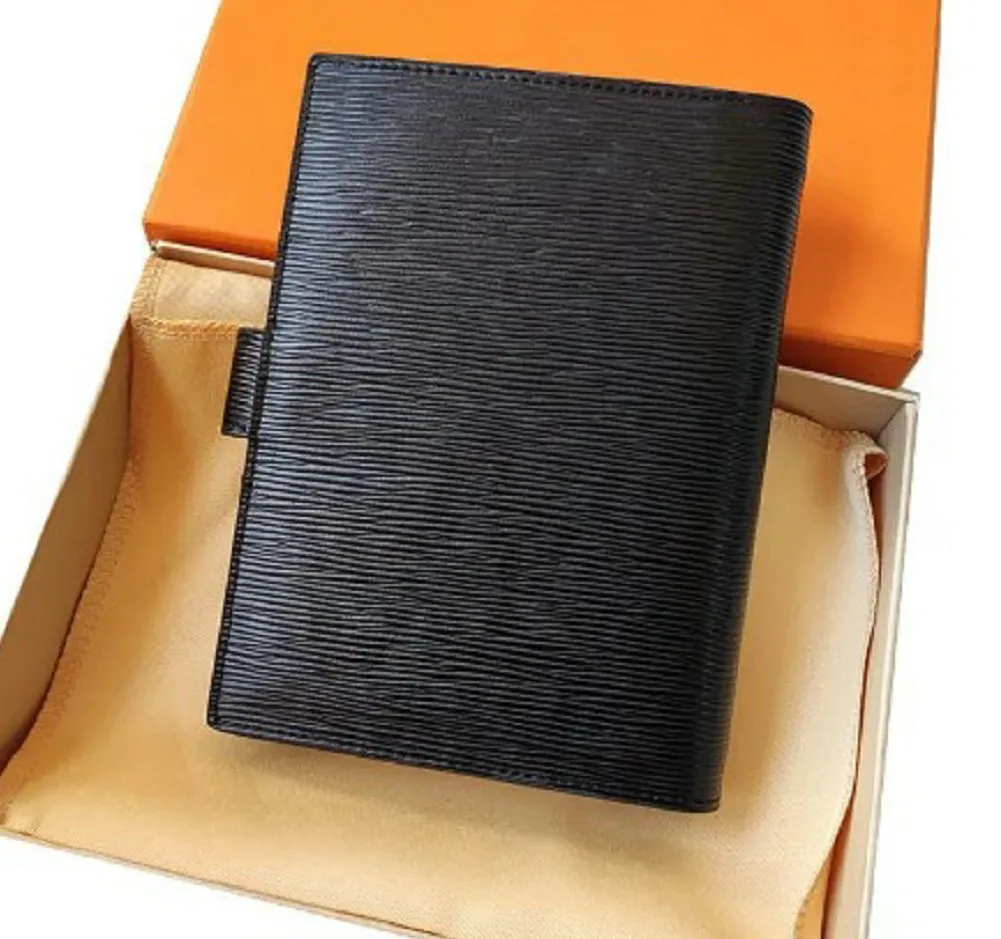Black EPI cow leather water ripple Small Notepad pocket notebook card passport holder meeting record book 19*14cm