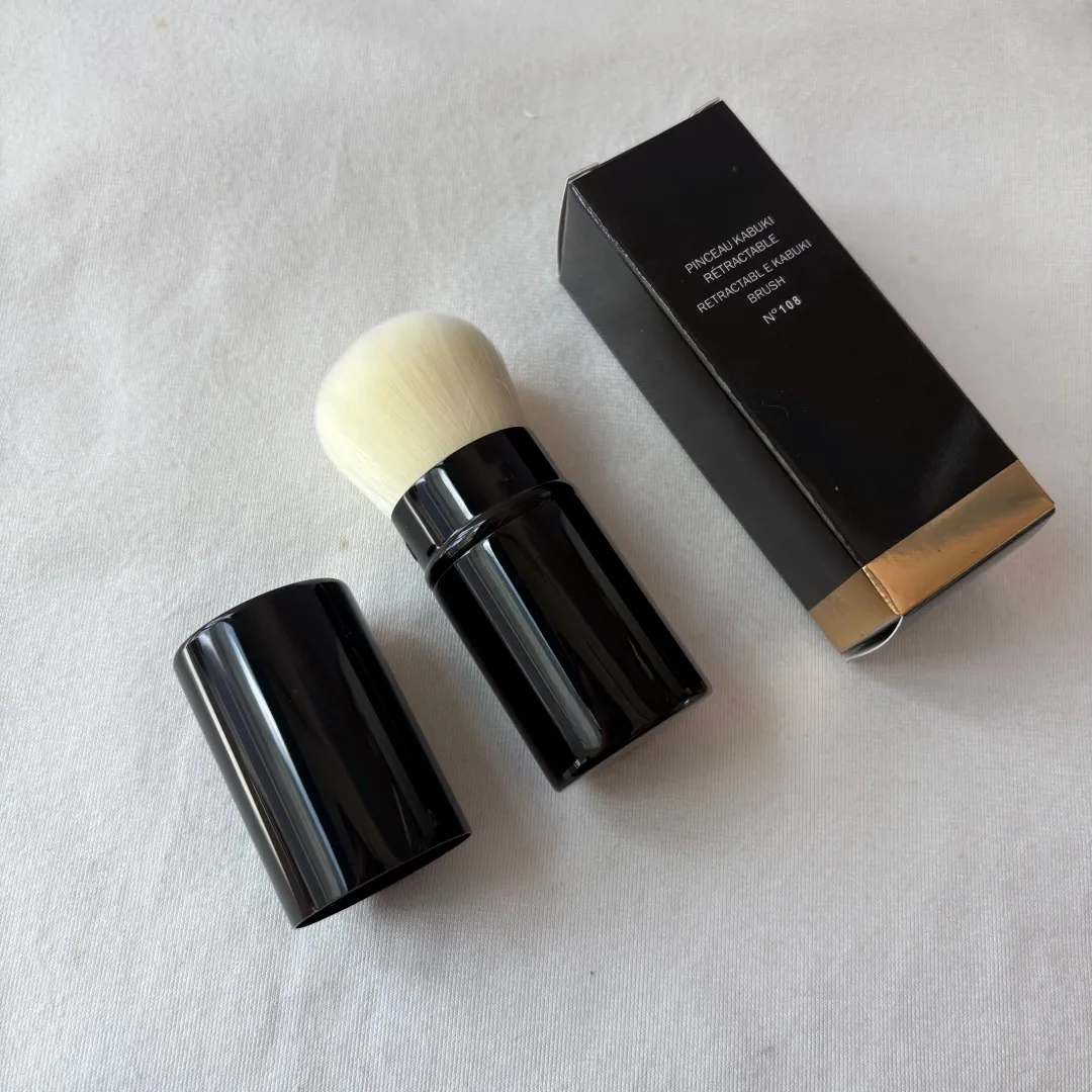Retractable Kabuki Brush - This compact round makeup brush combines cream, liquid foundation, powder, and blush application in one tool, streamlining your routine for flawless coverage anywhere. Its retractable design protects bristles and ensures portability for on-the-go touch-ups.