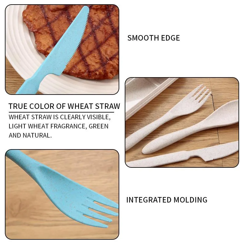 Portable Wheat Straw Dinnerware Set With...