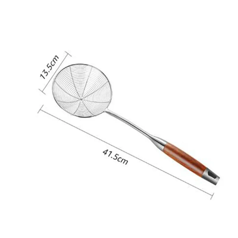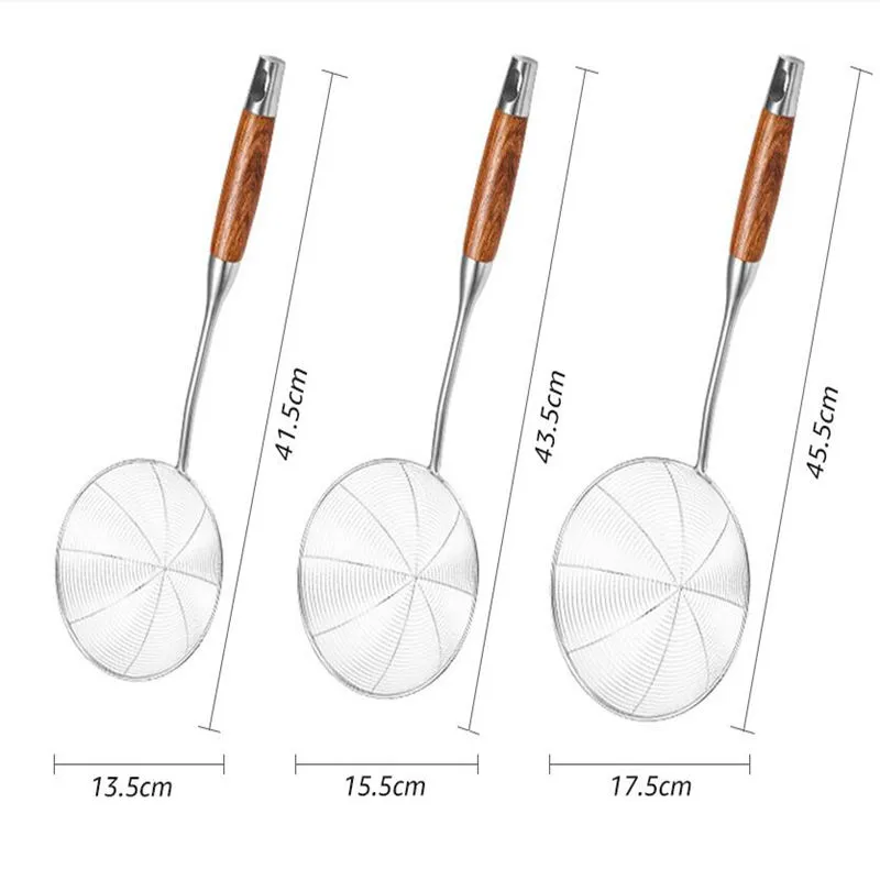 Premium Material & Dimensions: Crafted from rust-resistant 304 stainless steel with a wooden handle for heat protection and comfort; measures approximately 9 inches long, balancing durability with ergonomic handling for everyday kitchen use.