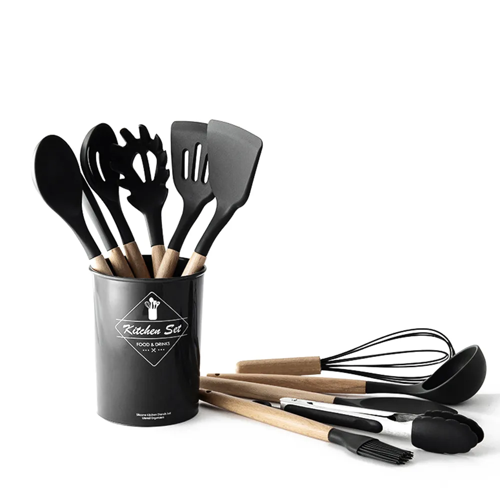 Silicone Kitchenware Utensils Set Black Non Stick...
