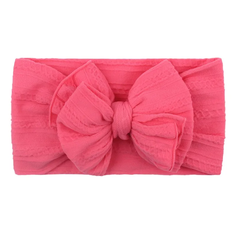 Soft Nylon Jacquard Hair Accessories Children's Hairband Baby Super Stretch Bow Headbands Girls Big Bows Solid Bands