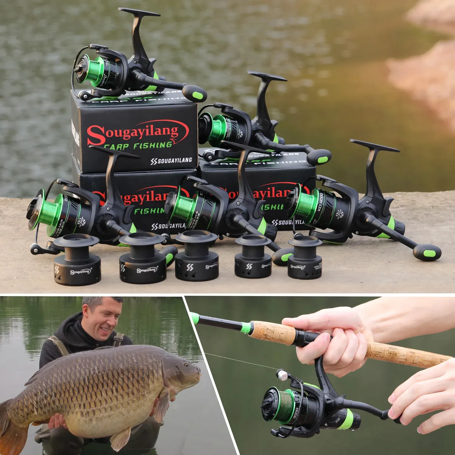 Sougayilang Carp Fishing Reel Spinning Strong Double Drag 10-20kg Molinete Carretilha De Pesca Olta Makaralar Sea Fishing Reels