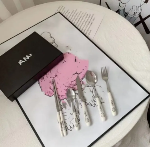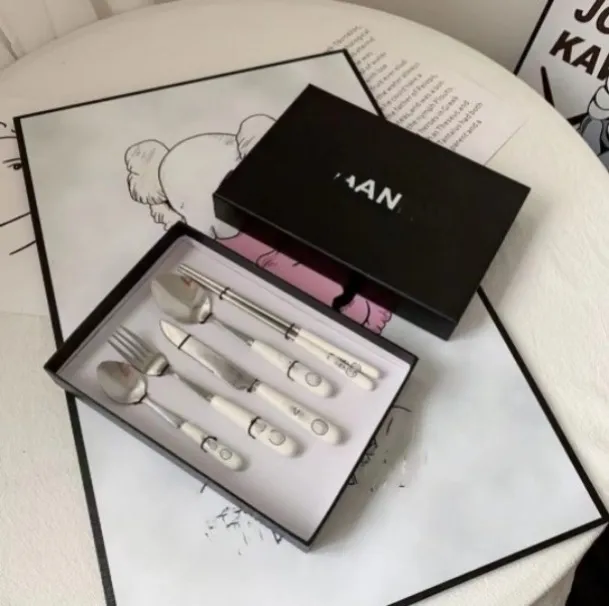 Complete 5-Piece Tableware Set: Includes a steel knife, fork, spoon, and a pair of metal chopsticks designed for versatile household dining, covering Western and Asian meal preferences in one convenient bundle for everyday use or special occasions.