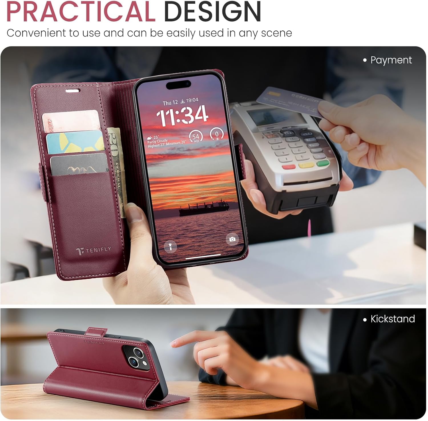 - Premium PU Leather: The craftsmanship phone wallet case is made of high quality PU leather and soft TPU inner shell, it is resistant to scratches and fingerprints while protecting your phone screen