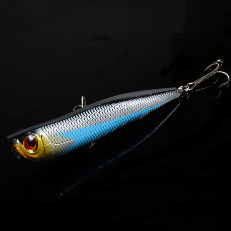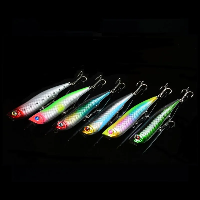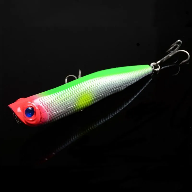 Product Details:Brand NewColor: 6 Color avaibleLength: 4.12"/10.5cm/pcsWeight: 15.7g/pcsDiving Depth: Top waterMaterial: PlasticHook Size: 4#Style: 3D EyesPacking:OPP bag