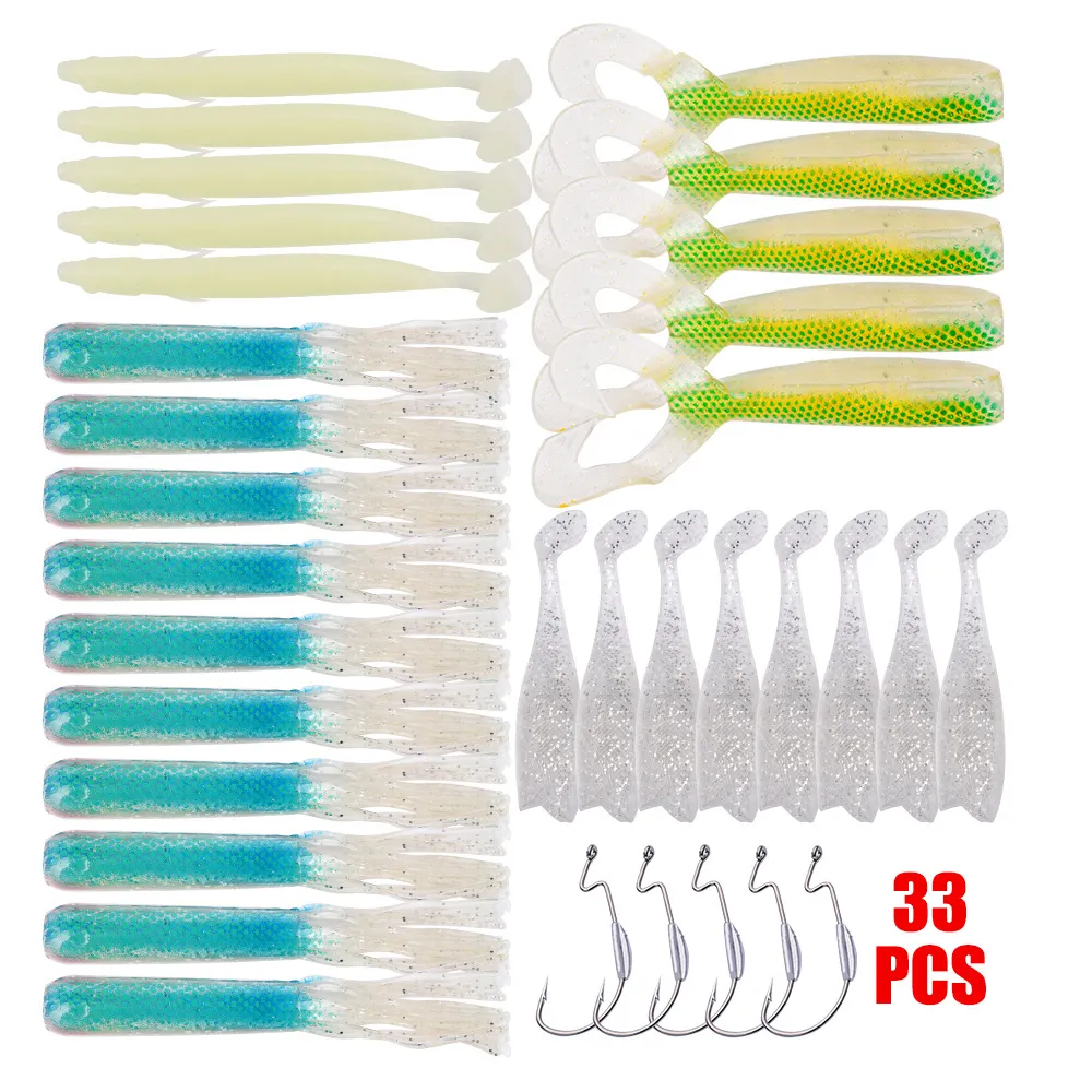 - 5 Colour 3 Styles Soft Bait glow-in-the-dark Bionic Shrimp Squid Jigs Saltwater Fishing Hook Shrimp Prawn Lures Luminous for Cuttlefish Octopus Fishing Lure KitUS $1.28-1.96/Piece