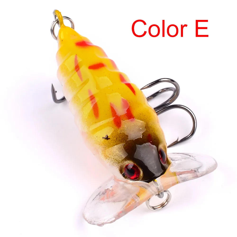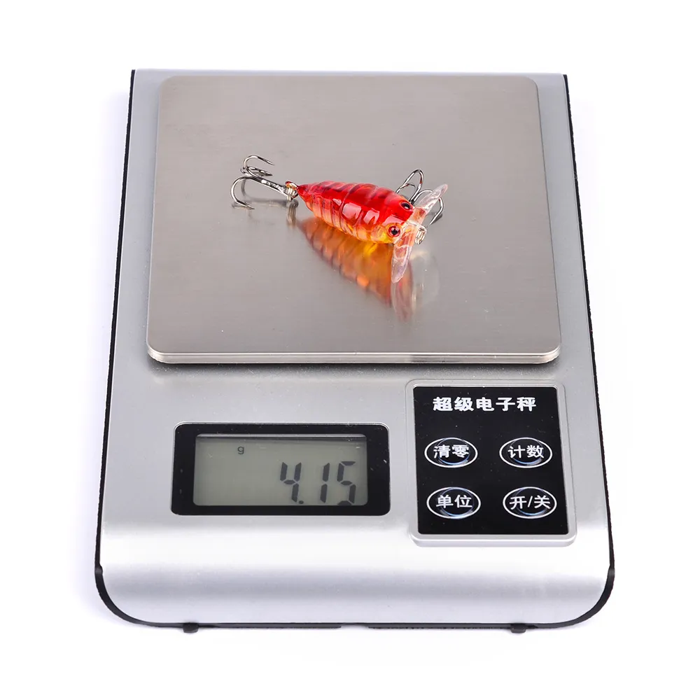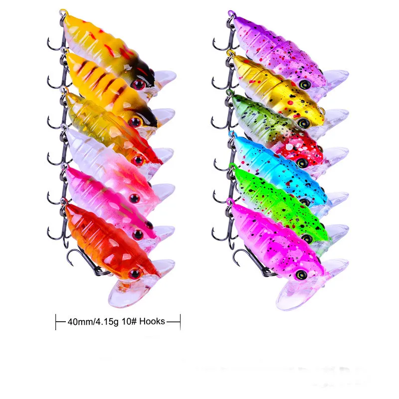 1). SIZE - Weight: 4.15g/0.14oz, Length: 4cm/1.57 Inches. Color: 6 Different Colors as pictures show. ABS material, Which will allow you to reuse the fishing lures.