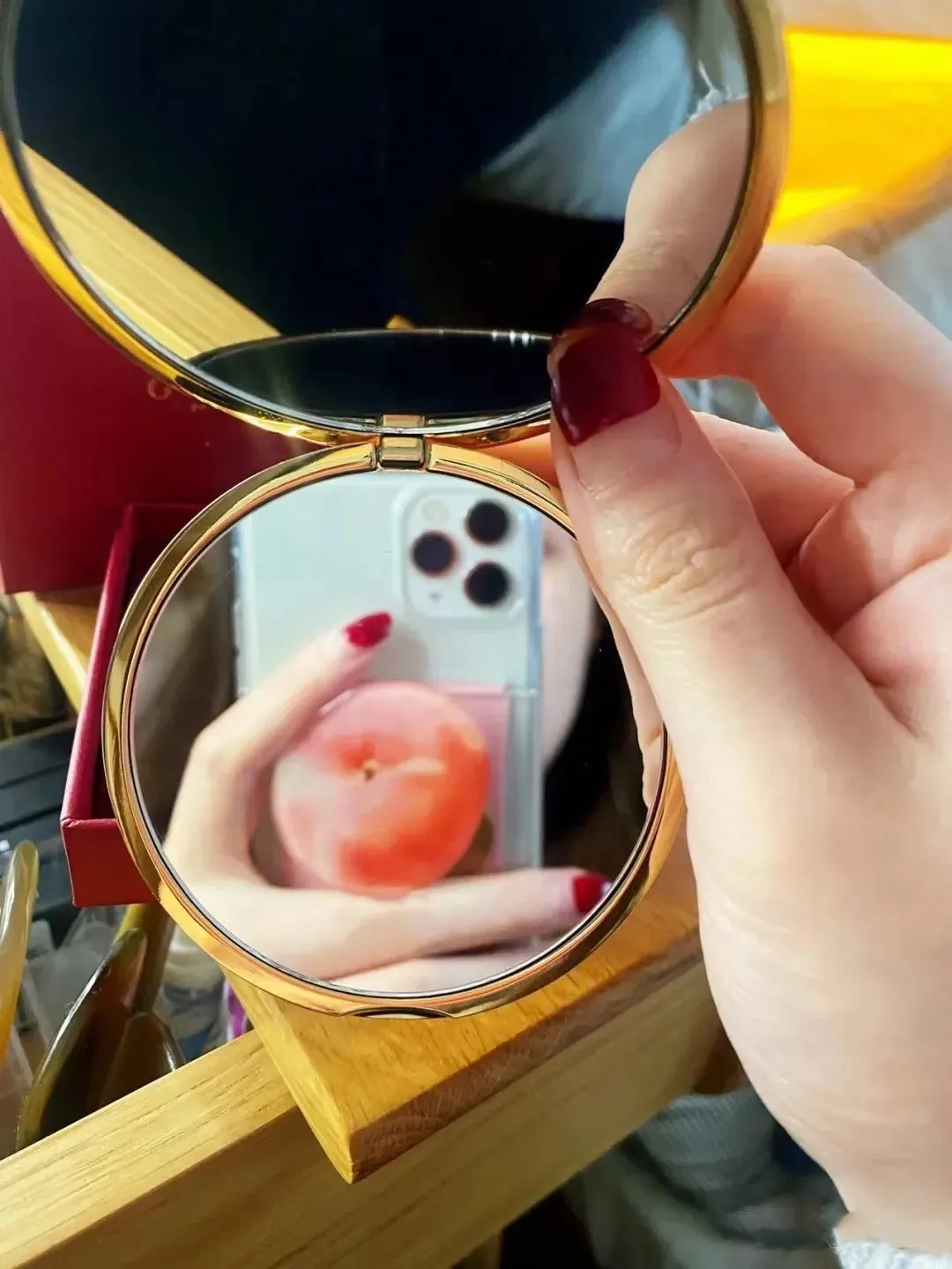 Luxury Gold Travel Makeup Mirror Compact Stainless Steel Metal Pocket Vanity Mirror 2 Sided Women