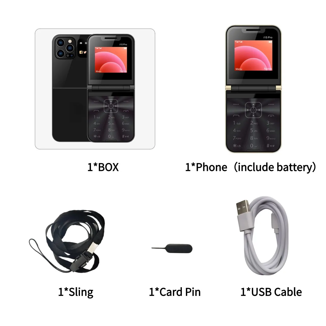 Original New i15 Pro Flip Cell Phone 2.4" Dual SIM Card 2G GSM Automatic Call Recording Bluetooth Foldable Button Mini Mobile PhonesUS $32.72-45.72/Piece