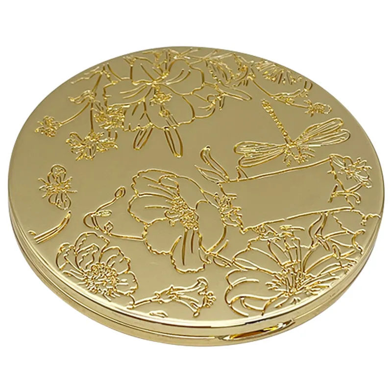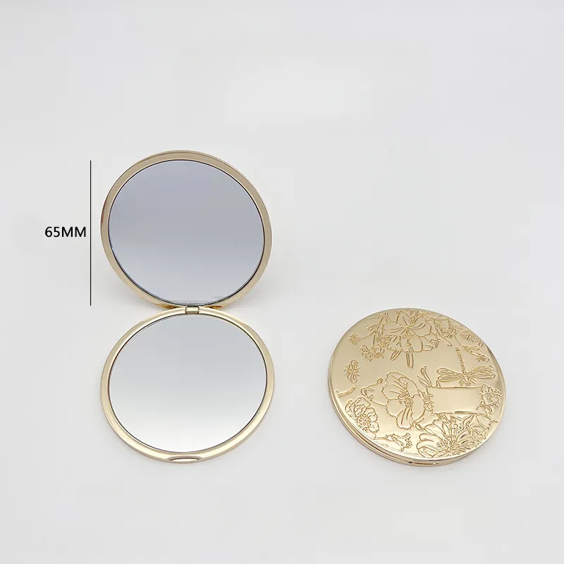 This compact makeup mirror features a durable metal frame with a luxurious gold finish, offering a sophisticated touch to your daily routine and effortless portability.