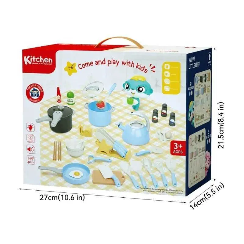 Mini Kitchen Toy Set: This 32-piece childrens kitchenware set offers a realistic role-playing experience, encouraging creativity and fine motor skills through simulated cooking activities that fit into everyday playtime scenarios at home or daycare.