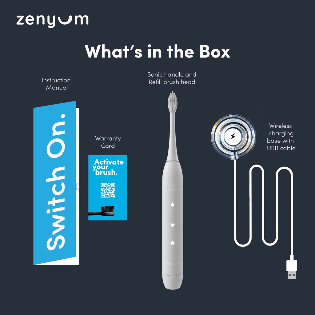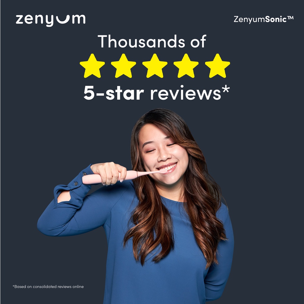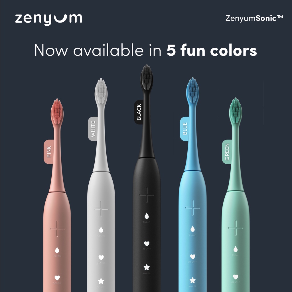 Zenyum Sonic Electric Toothbrush - Black/White/Pink/Blue/Green (Designed in Singapore/Sonic Vibrations/1 Year Warranty)